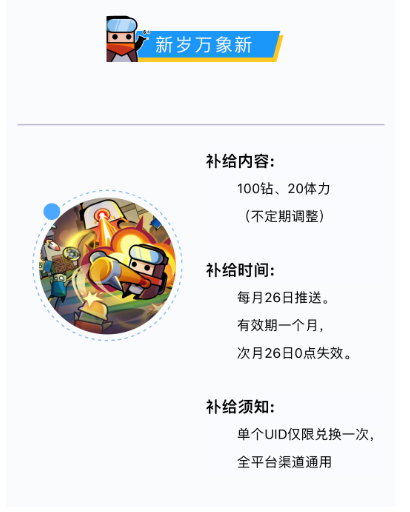 补给时间:每月26日推送。有效期一个月,次月26日0点失效。