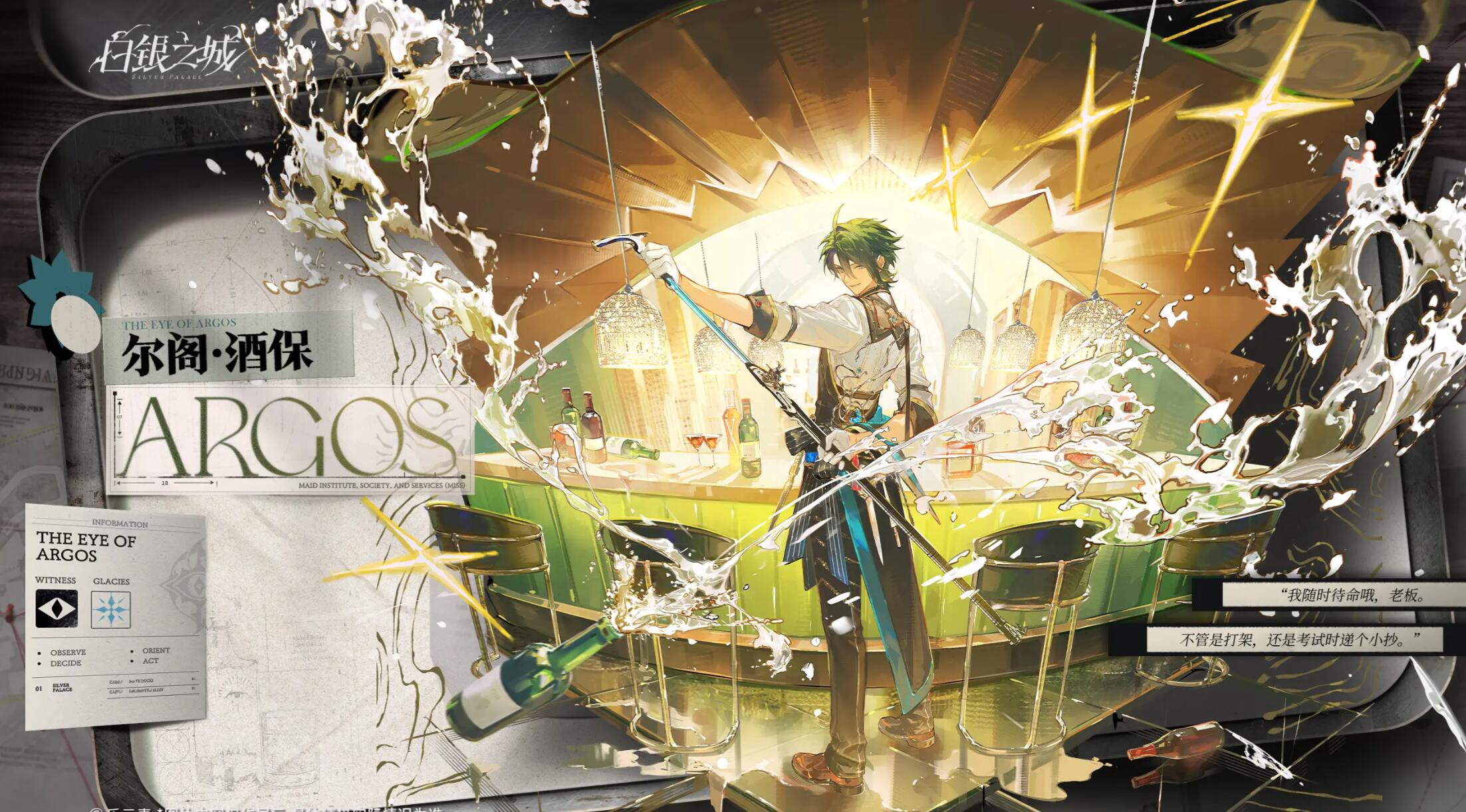 尔阁原为女仆协会注册成员,因任务性质与职业适配性调整,转入夜莺酒吧担任调酒师。该身份实为长期潜伏策略的一部分——酒吧作为城市信息交汇中心,天然具备高密度人际接触条件。他通过观察顾客微表情、分析对话逻辑、捕捉酒后失言等细节,持续收集碎片化线索。游戏机制中明确设定:尔阁的情报获取能力直接关联“情报点”积累效率,是推动关键剧情解锁的隐性驱动者。