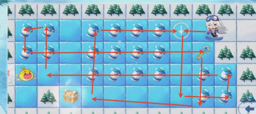 参与雪场活动,不仅可以给玩家带来鲜牛奶和铃铛,还可以解锁后续的一系列奖励,因此还是比较省心的。只是在通关的过程中就有很多的注意事项,尤其需要注意冰面上的滑行规则。没有遮挡物就会一直滑到撞树才会停下来,建议玩家要提前规划路线。地形是很简单的,按照右下左上的顺序走,可以把所有的奶瓶捡完,也可以精准的停在终点,新手就可以一次性通过。地形就会逐渐的变大,不过会呈现出网格状,记住先右后左,由外及中。先把右边的奶瓶全部的拿完,然后打开宝箱,再转左边,不要着急着跑到终点。