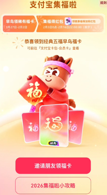 提前参与小任务,有机会获得万能福、沾福卡等稀有卡。