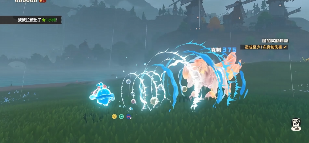 3号技能推荐“水光冲击”,作为稳定输出手段,可对单体目标造成140点魔法伤害; 4号技能可在“魔能爆”与“当头棒喝”之间择一装配:“魔能爆”的伤害随自身魔力消耗量提升而增强;“当头棒喝”则在切换出场精灵时自动触发,对当前目标施加一次高额固定伤害。