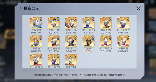 迪迦、奈克瑟斯和芝顿只是有概率抽出