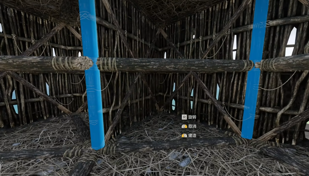 最开始的时候,咱们先建一个1x2的小房子用来开荒。进去之后在里面搭一个三角板,这样空间就会大一些,能多放几个箱子。把领地柜放好,一个简单的开荒房就完成了。等手里稍微有点材料了,就可以开始往外扩了。