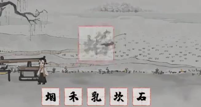 《栖云异梦:梦蝶》第七关“水复”需在场景中收集【禾】、【坎】、【乳】等物品。将【坎】拆解后与【石】合成【砍】,用于砍伐木头获得【柴】。用【烟】中的【火】在野灶生火。核心步骤为:将【蜭】与【乳】多次拆解,最终与【禾】组合成【稻】。舂米得【米】,煮熟成【饭】交给老伯,即可解锁船只继续前行。