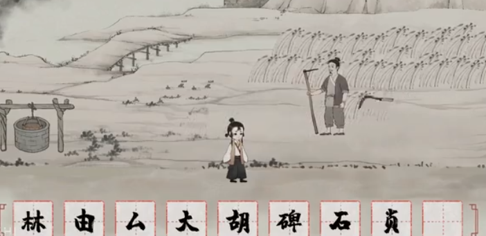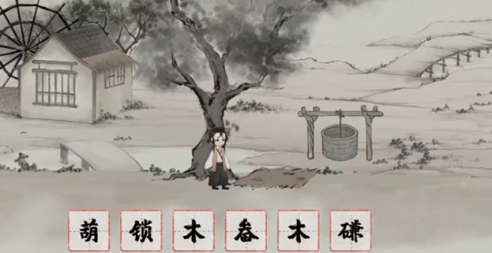 《栖云异梦:梦蝶》第八章“孤苗”需在场景中收集【锁】、【葫】、【木】等物品。将【畚】与【葫】拆解组合成【苗】,种入田地。用【桶】与【绳】从井中打【水】灌溉,使麦子成熟。拆解【磏】与【锁】合成【镰】收割得【麦】。用两个【木】成【林】,再结合【镰】中拆出的【广】与【石】按顺序组成【磨】,将麦子磨成【面】交给农夫即可通关。