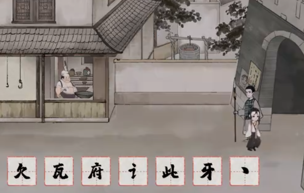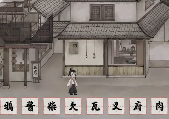 《栖云异梦:梦蝶》第十一关“怪城其三”中,需在城内收集物品并完成帮厨任务。将【瓶】置于酱缸装取【酱】;【铁】放入火炉烧红后交给铁匠。拆解【饮】与【瓶】得【饼】,【腐】与【酱】得【酱肉】;【叉】与【鸦】拆解合成【鸡】。拆解【诵】与【柴】得【桶】,打【水】后完成厨房工作赚取工钱,即可交钱出城。