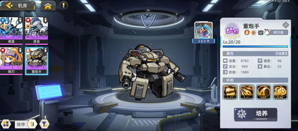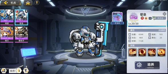 口袋机甲新手培养角色包括:壁垒(主T守卫,嘲讽并具备高格挡)、嗔雷(特殊C位歼灭,依靠磁暴与解离debuff造成高暴击伤害)、镜刃(主T歼灭,拥有高额增伤但需搭配护盾)、以及重炮手(主C歼灭,通过战火标记叠加与消耗打出爆发追击)。合理搭配这些角色可组成有效阵容,助你顺利推进前期关卡。