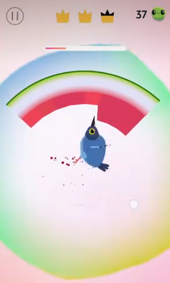 3、关卡中有个彩色果肉,啄后会将所有的果肉都变成好的,有时间限制,需要快速啄果肉。