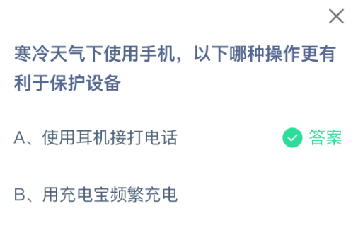 以上就是寒冷天气下使用手机,以下哪种操作更有利于保护设备?支付宝蚂蚁庄园2026年2月5日答案最新,更多相关攻略,请关注3dm手游网更新!