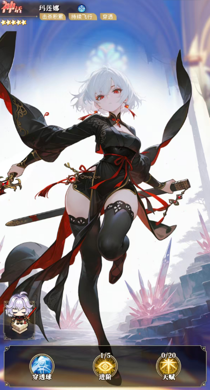 玛莲娜:依赖层数叠加实现质变的成长型输出角色。拥有持续飞行与弹道穿透能力,穿透命中时可额外触发弹射,初始附加10%伤害增幅,最高可叠加至100%。五阶突破后,弹球基础伤害提升60%,弹球数量+2;使用风刃技能击杀敌人时,立即获得1秒耐久增强,该效果随击杀数累计,最多延长至5秒。终期升阶可将穿透相关总伤害系数提升至200%。