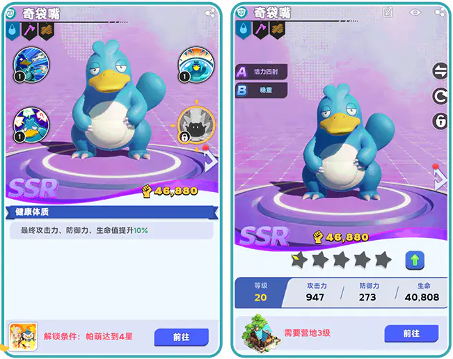 帕萌升级可以提升各项属性,同时升星也可以让帕萌解锁更多技能,提高技能等级的上线。
