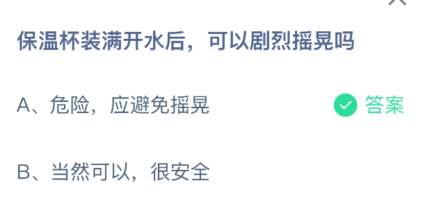 以上就是保温杯装满开水后可以剧烈摇晃吗?支付宝蚂蚁庄园2026年2月7日答案最新,更多相关攻略,请关注3dm手游网更新!