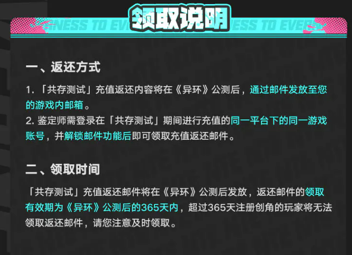 异环通行证返还规则是什么?最近异环开启了共存测试,很多玩家都在问测试期间花的钱会不会白花。其实官方早就公布了返还规则,而且返还力度还挺大的。今天小编就带来异环通行证返还规则介绍。测试期间充的钱不但不会亏,公测之后还能拿到更多东西回来。这次测试虽然会删档,但充值的部分全都会按照规则返还到公测账号里。下面给大家详细说说这个返还机制到底怎么算,特别是关于通行证这块的内容。