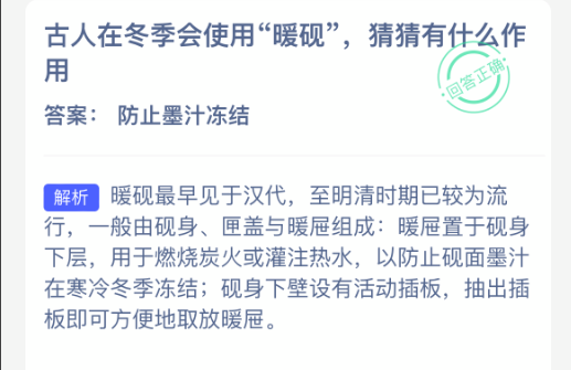 以上就是古人在冬季会使用“暖砚”,猜猜有什么作用?支付宝蚂蚁庄园2026年2月9日答案最新,更多相关攻略,请关注3dm手游网更新!