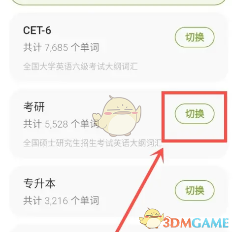以上就是小编带来的无痛单词怎么切换单词本?切换单词本方法,更多相关资讯教程,请关注3DM手游网。