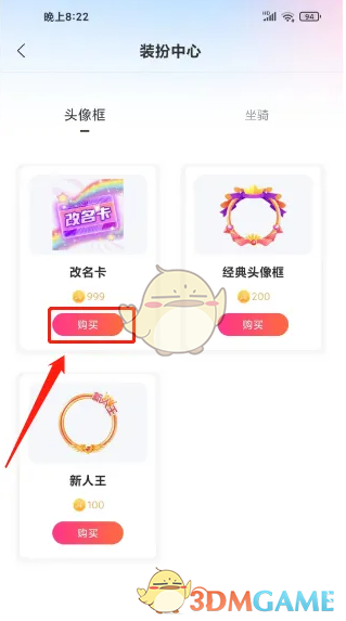 3、进入装扮中心,点击改名卡,下方【购买】。