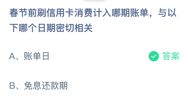 以上就是春节前刷信用卡消费计入哪期账单,与以下哪个日期密切相关?支付宝蚂蚁庄园2026年2月11日答案最新,更多相关攻略,请关注3dm手游网更新!