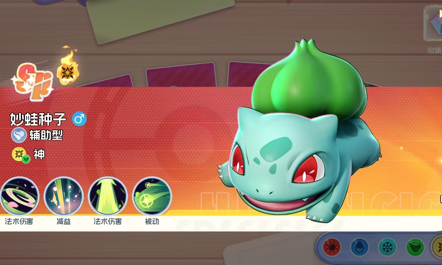 妙蛙种子虽然是辅助类的SP宝可梦,但它也有着较为出色的输出能力,且可通过攻击来为队友回血,还能令它们获得伤害减免的效果,更能通过催眠粉控住敌人很长时间。