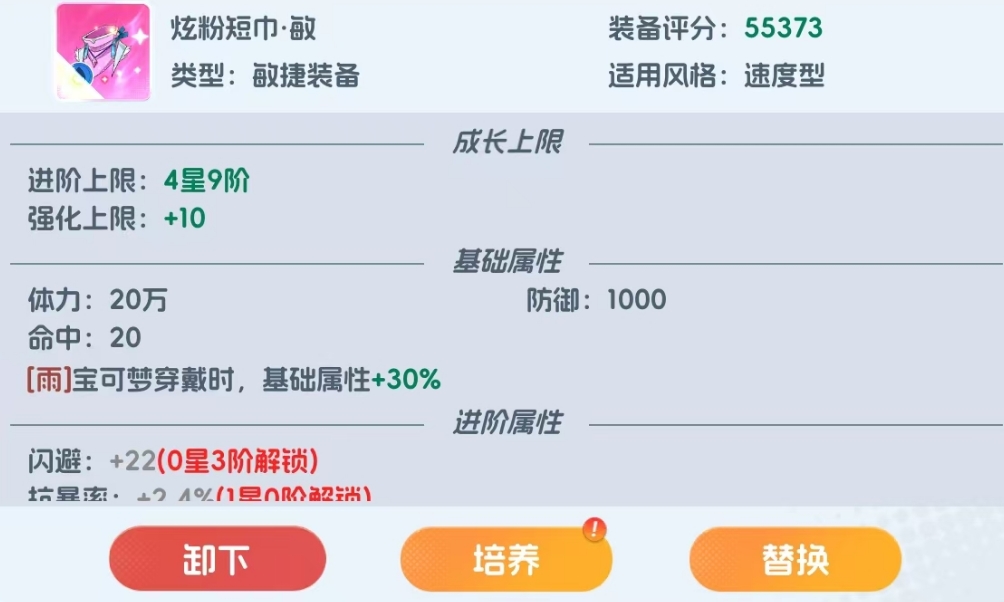 养成时,超级甲贺忍蛙与进化之前的呱呱泡蛙一样,都是神、雨双属性的宝可梦,所以它能吃到装备上附带的神阵容加成或雨阵容加成,因此让超级甲贺忍蛙继承之前呱呱泡蛙所穿戴的装备即可。后续养成时,优先将超级甲贺忍蛙的品阶升满,然后完成努力值的升阶和招式精通的培养,有机会时再进行MEGA进化的突破。