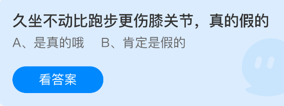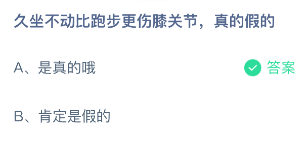 以上就是久坐不动比跑步更伤膝关节,真的假的?支付宝蚂蚁庄园2026年2月12日答案最新,更多相关攻略,请关注3dm手游网更新!