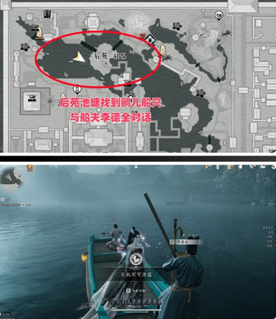 后苑池塘找到鹂儿船只。