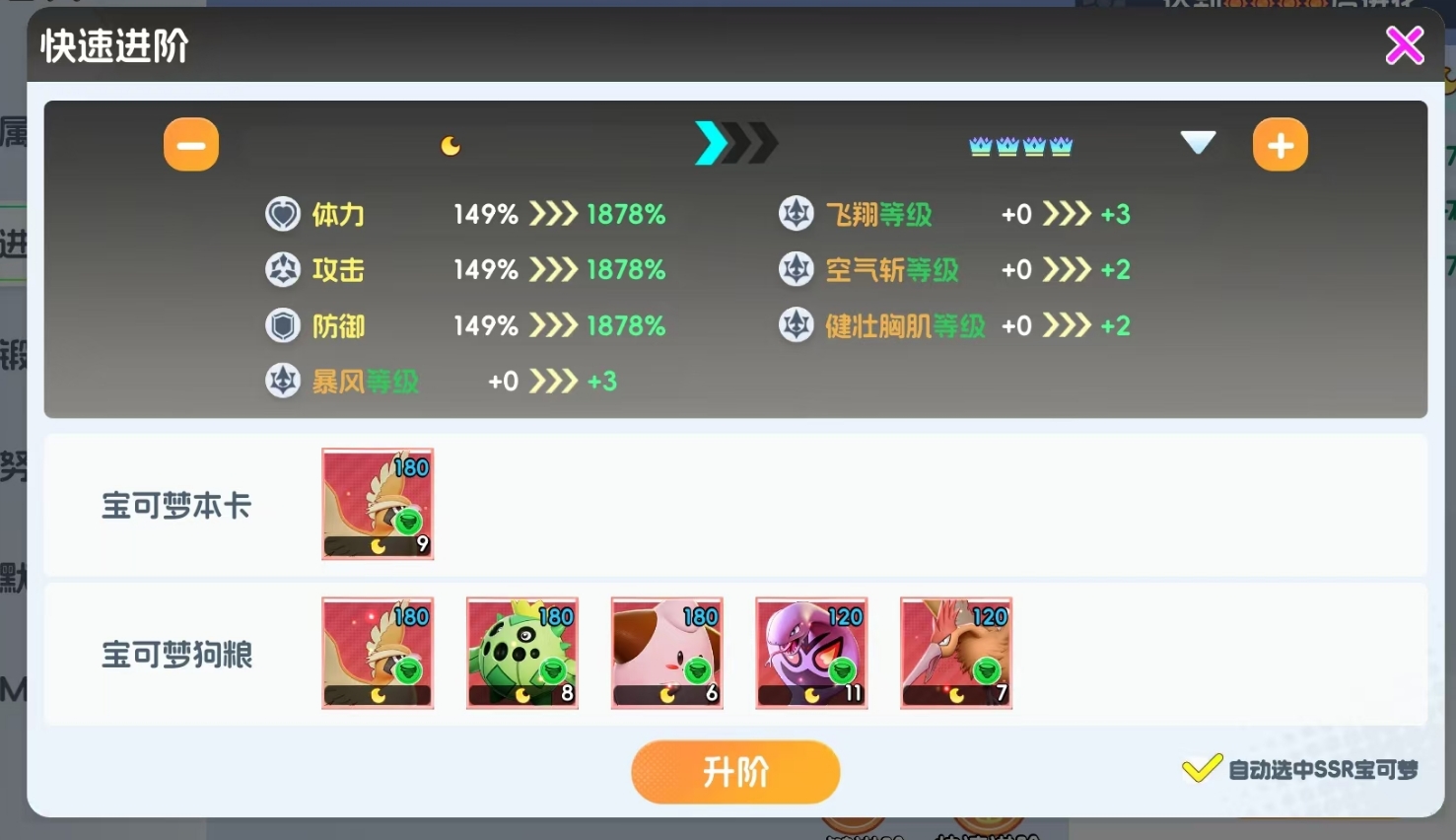 大比鸟在宠物集结里并不能直接抽取,而是通过波波进阶而来。当波波升阶至太阳4阶后,便可解锁自己的第一形态比比鸟,继续升阶至皇冠4阶后,便能解锁自己的第二形态大比鸟。如果从月亮1阶开始算,玩家要想帮助波波成功进阶到大比鸟,需要消耗9只波波本体以及33只风阵营的宝可梦狗粮,其中,宝可梦狗粮可选同为风阵营的SR宝可梦大嘴雀和阿帕怪,它们的上限都不高,所以拿来作为狗粮非常适合,非必要情况不要使用任何SSR风阵营宝可梦,亦或是波波本体来作为宝可梦狗粮。