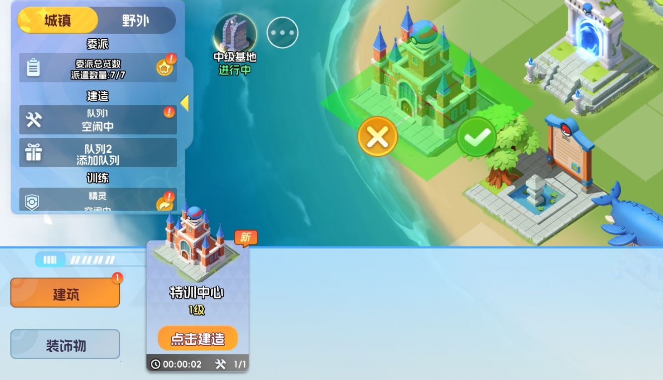 宠物集结里的建筑物分为功能建筑、资源建筑和风景建筑三种,其中功能建筑能帮玩家解锁各类玩法,比如社团大厅、对战竞技场、战斗学院等,资源建筑则是资源产出的必要建筑,它们在建造好后会源源不断地为玩家们产出资源,还能派遣宝可梦入驻提高资源的产出效率。而风景建筑则没有任何的功能性,它们只能帮助玩家们进行基地的美化,所以玩家最好优先进行功能建筑的建造,其次是资源建筑,等自己资源充裕后,再去通过风景建筑来美化基地。