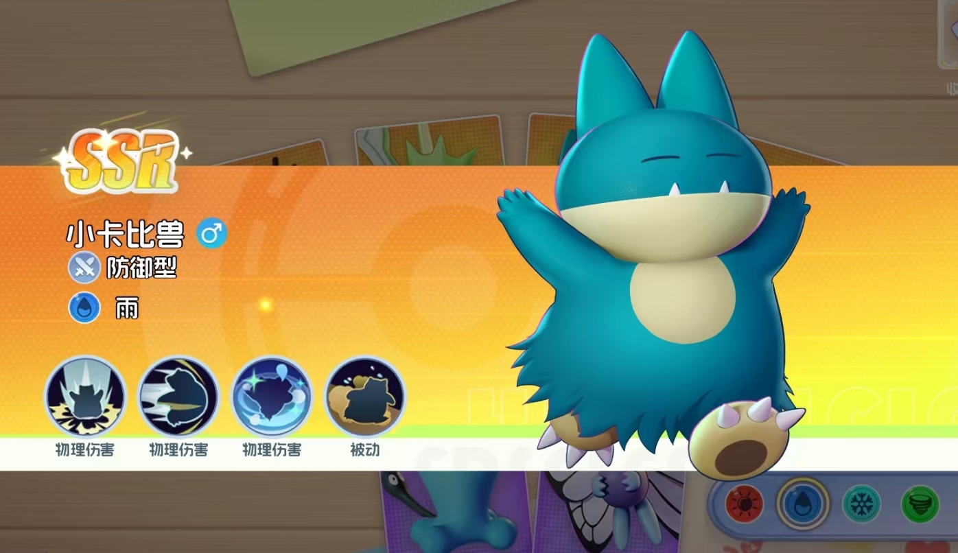 同样是初始就能获得的宝可梦,开启大招后自带减伤,且能对周边敌人造成攻击的同时,还能持续地嘲讽住敌人,更能通过瞌睡效果来降低敌人的闪避和攻击速度,是拥有控制能力的防御型宝可梦。11级时解锁的重磅重撞还附带基于最大生命值的额外伤害,令它也拥有着极强的输出能力。