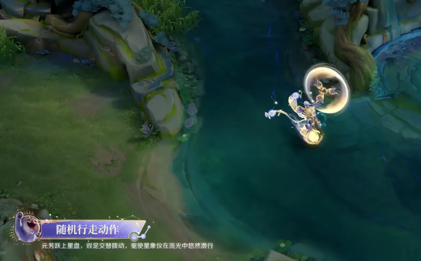 特效设计整体以国风神话中的娄金星君为灵感,融入星宿以及星象仪等元素,采用蓝金色为主色调,并以代表星辰神力的紫色点缀其间,体现李元芳活泼机灵,充满少年心气的人物特点。