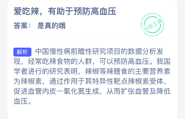 以上就是爱吃辣,有助于预防高血压?支付宝蚂蚁庄园2026年2月24日答案最新,更多相关攻略,请关注3dm手游网更新!