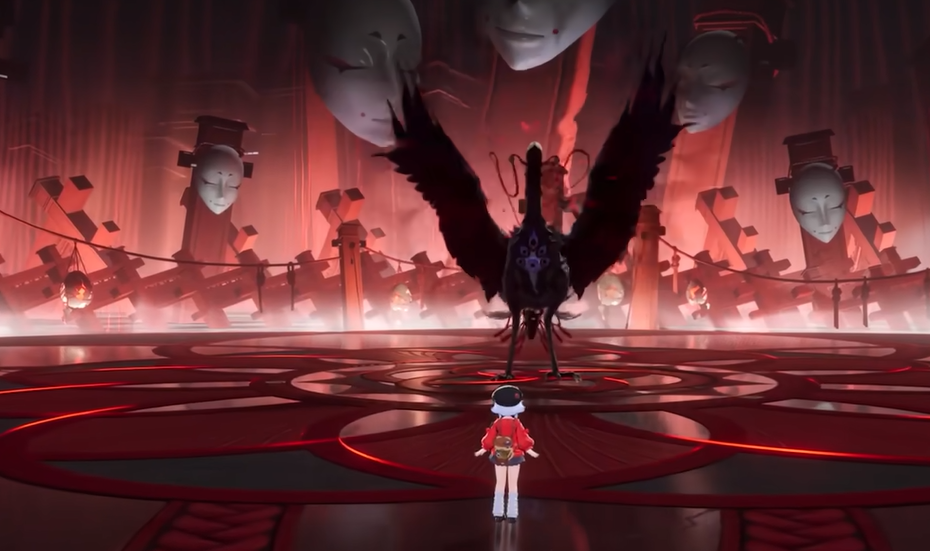越了解囿巢鸟,越会想到另一种鸟,就是传说中的姑获鸟。在日本神话里它叫夜行游女,不过这个传说最早其实是从中国来的。姑获鸟能变成人也能变成鸟,凑近看囿巢鸟的话会发现,它虽然是鸟的身体,脑袋上却戴着人脸面具,设计灵感就是这么来的。游戏里囿巢鸟更偏向鸟的样子,所以关于人的元素就藏在了场景的各个角落。这个设计其实和它的核心理念有关系。