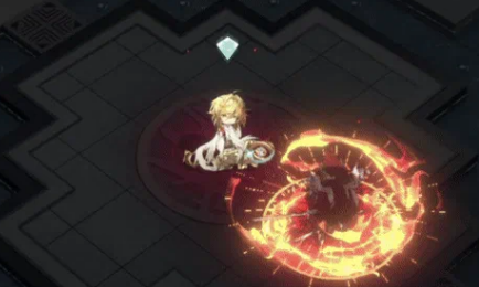 太阳神鸟的核心玩法,主要围绕被动技能光耀古今展开。当他处于天时往复状态时,周围几格内的敌人,只要被队友攻击后受伤,太阳神鸟就会自动消耗一枚礼弹进行追击,造成攻击力百分比的构素伤害,追击的同时还能叠加灿金状态。等灿金状态层数攒够了,追击就会附带额外伤害,如果这时候还开着四季同鸣,追击甚至能对受击目标周围的敌人,造成范围伤害。这种机制,让太阳神鸟在团队作战中的输出能力非常可观,特别是面对密集站位的敌人时,伤害会成倍增长。
