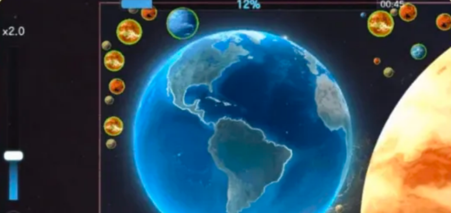 当靠近那些比自己小的星球时,引力会自动把它们吸过来,然后就被吞掉了,自己的体积也跟着变大。但是要特别小心那些大块头,看到比自己大的赶紧躲开,不然就变成别人的食物了。所以判断星球大小,保持距离这个事情真的挺重要。