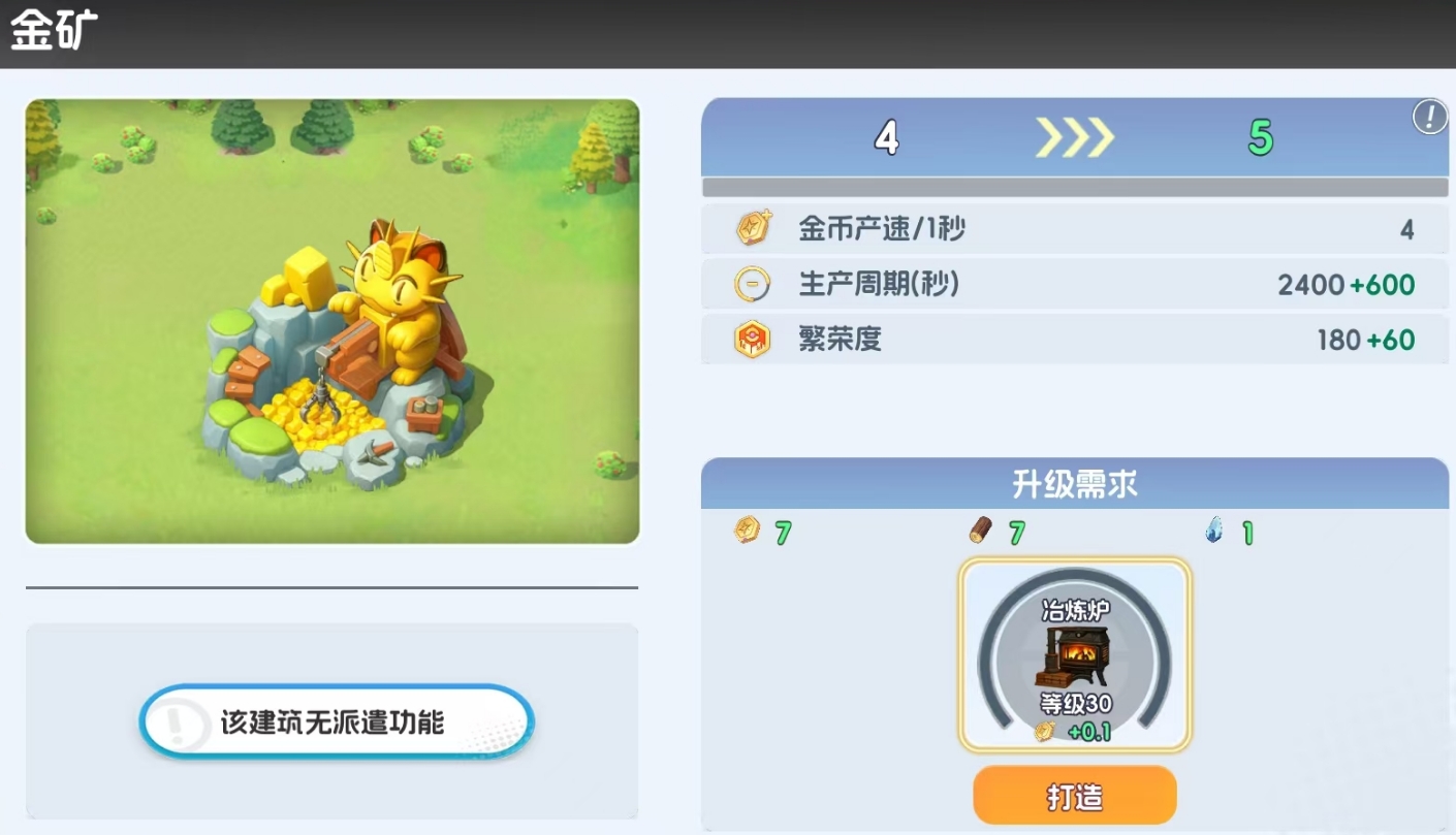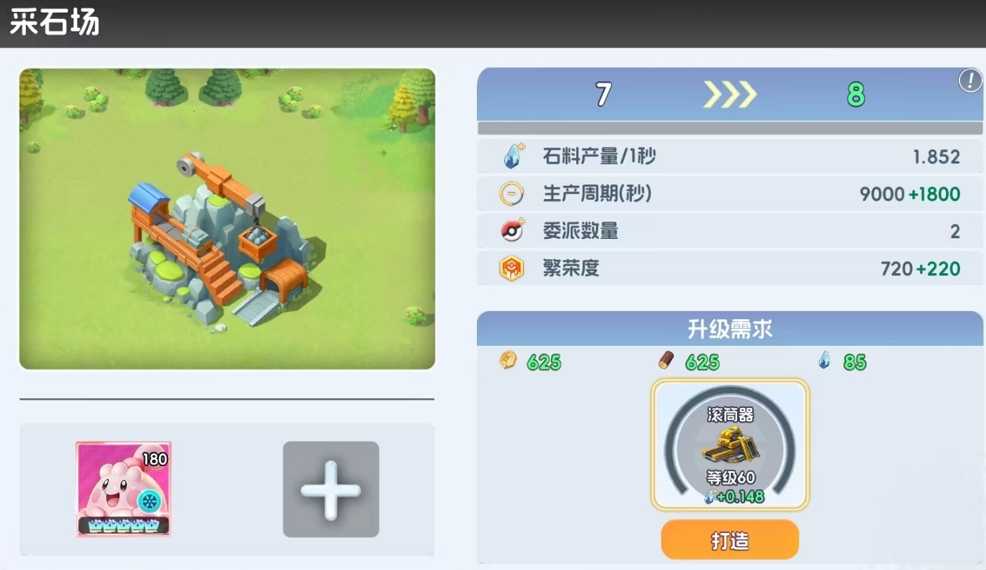 不管是为建筑升级还是进行设施打造,都需要消耗石材、木材和金币资源,建筑等级越高时,它们升到下一级所需的资源数量就越多,因此玩家们在进行建筑升级时,除了优先完成最重要的宝可梦基地的升级外,还要及时去提升金矿、伐木场等资源建筑的等级,让它们能产出更多的资源为自己所用,最后再去升级研究所、社团大厅、委托板等非资源产出型功能建筑。初始时,玩家一支建造队列可用,不够用时可购买建造队列礼包,解锁第二支建造队列。