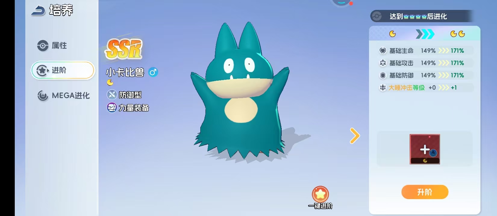 小卡比兽的基础面板就已经奠定他的地位,初始的体力值是6256在同等级中被称之为翘楚。配合防御型的定位,让他在初期就能够站稳脚跟,给后排输出创造出安全的输出环境。它的定位比较清晰,高容错率的团队核心,而并非是单纯性的伤害输出。在升阶系统中,小卡比兽的成长曲线是比较平滑的,每一次升阶基础生命还有防御力都会有迅速的提升。让他在游戏周期随时都能够保持竞争力,再提升到下一个阶段时,核心技能在提升等级之后,伤害还会增强。