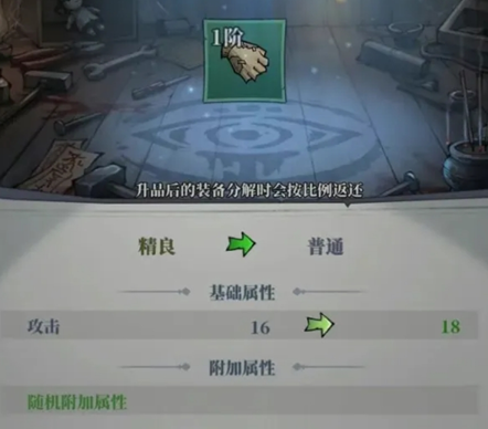 升品无法提升装备品阶,但【升品过的装备】分解时会按比例返还锻造石,方便后续更高品阶装备进行升品。