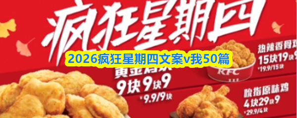 又到星期四,朋友圈的“众筹”大军已上线。今年的v我50文案,卷出了新高度!下面给大家带来了2026疯狂星期四文案v我50篇,kfc疯狂星期四v我50最新文案分享!