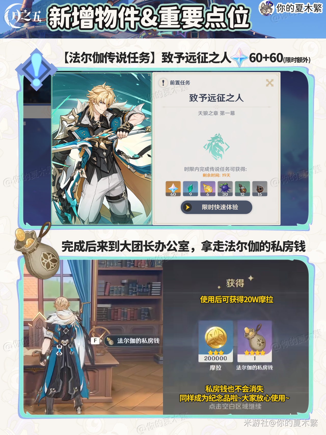 完成后获得:法尔伽的私房钱、20W摩拉