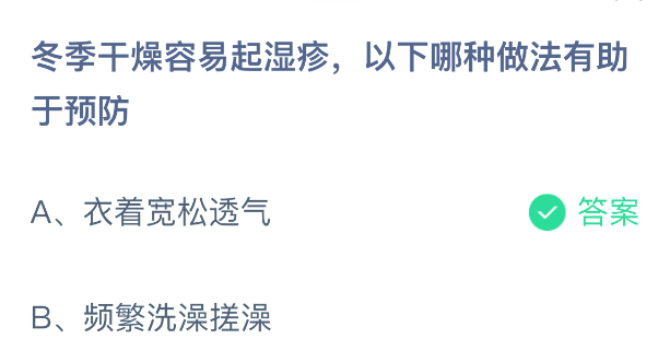 以上就是冬季干燥容易起湿疹,以下哪种做法有助于预防?支付宝蚂蚁庄园2026年3月4日答案最新,更多相关攻略,请关注3dm手游网更新!