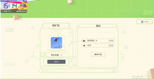 材料方面:木材在星球上砍树获得,铜材通过挖矿获得铜矿石合成获得。