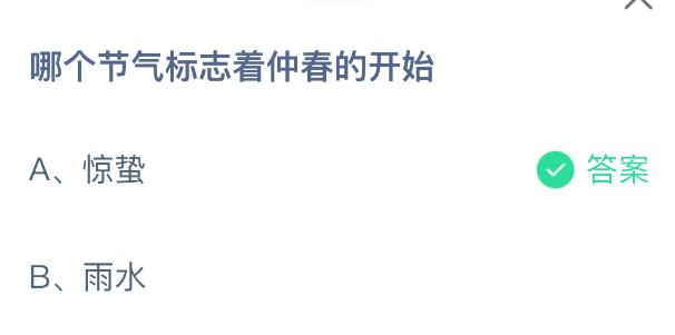 以上就是哪个节气标志着仲春的开始?支付宝蚂蚁庄园2026年3月5日答案最新,更多相关攻略,请关注3dm手游网更新!