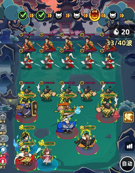 该阵容在应对高速推进机制时表现稳健。实战数据显示,当张飞等级达到12级时,队伍有较大概率成功通关第29波敌人。而第25至29波之间即为收益拐点——此时累计可获得徽章奖励达50枚,投入产出比处于高位区间。若追求更高层数与更优奖励稳定性,则需进一步提升主力武将的品质星级,从而夯实整体战力基线。