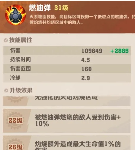 1、所有技能解锁后,第一个优先拉到26级的,必须是燃油弹!