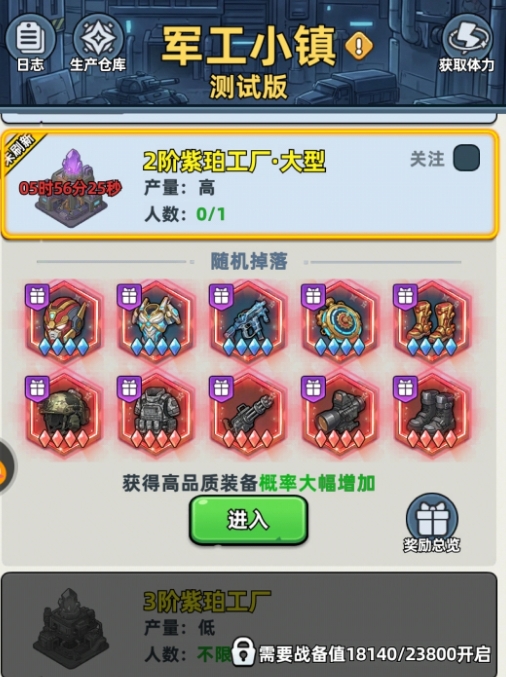 开启军工小镇玩法后,会同步开启指挥官装备功能,并且军工小镇就是生存33天中指挥官装备最为主要的获取途径。军工小镇里充斥着各种不同的怪物,这些怪物占据着指挥官装备生产工厂,玩家们先要与它们作战,成功战胜它们后,就可使用工厂来进行指挥官装备的生产。工厂的品阶越高,所能生产出来的指挥官装备品阶也就越好,同时游戏也会为玩家们罗列出各工厂能生产出来的指挥官装备情况,玩家按需去选择就好。