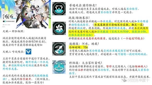 先说结论,汤汤在冰队定位与物理队黎风类似为辅助副c,与大家期望的冰队小陈这种叠层核心加输出副c还是有一定差距,也不是冰队塞希这种大拐,整体作为冰队四号位润滑剂,可以被替换为生存位昼雪,或者回技力的阿列什,也可以作为冰队没有洁哥的法术脆弱替代。