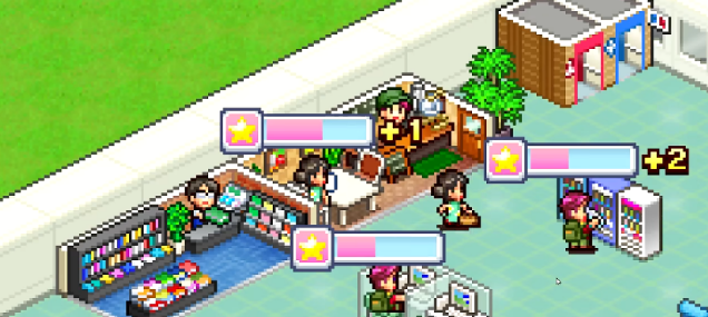 店铺等级上来之后,机场周边还可以开其他类型的铺子,不同店铺之间也有联动提升的效果。比如咖啡店这边,可以配合自动售卖机或者便利店一起开,这样整个机场区域的人气会往上涨,带动的不只是一家店的收益。