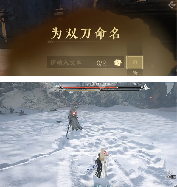 任务中要给自己的双刀取名字,必须刀/斩/刃结尾,前面两个字可以自己取。后面打怪那里随便打几下,阮归真掉点血就继续走剧情了完成就加入了