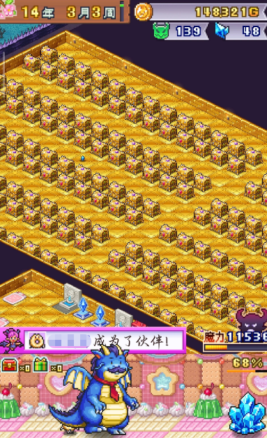 此外需关注设施可持续性:当现有设施数量不足时,可通过“轮回”功能重置资源配额,重新优化整体布局;若怪物箱库存告急,可临时替换为“纪念品店”,在维持基础金币收益的同时,同步支撑怪物培养进度。