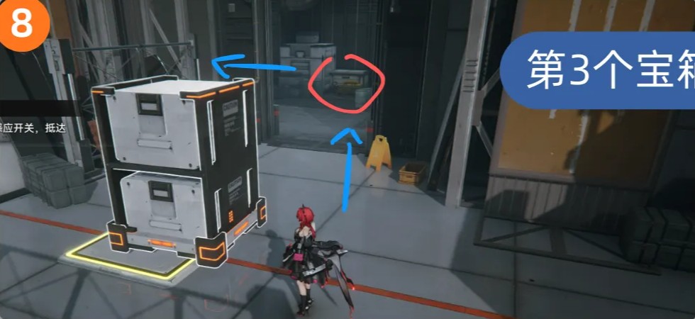 4、踩着货箱跳上去即可拿到第一个宝箱