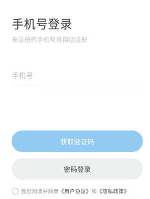 2、输入手机号进行登录,未注册的手机号会自动注册。